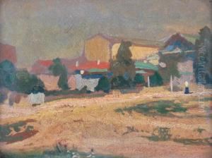 Pejzaz Ze Stawem I Wioska, Ok. 1900 R.