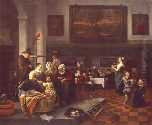A Woman Undressing A Young Boy In An Interior, Another Child Lying In A Bed In The Background