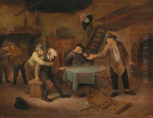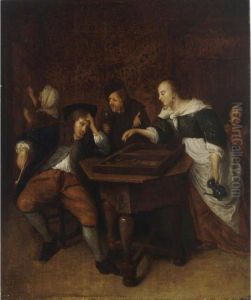 An Interior With Figures Playing Tric-trac