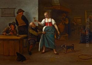 Tavern Interior With A Maiden And Monk In Discussion To Thefore