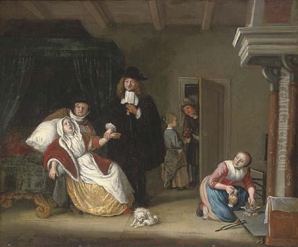 An Interior With A Doctor Visiting A Lady