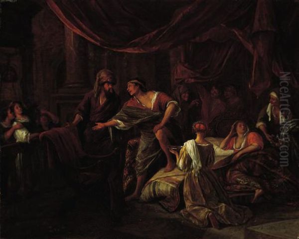 Bring the timeless beauty of Jan Steen's Jacob Confronting Laban(orAntiochus and Stratonice) into your home with a handmade oil painting reproduction. Carefully recreated on canvas by skilled artists using traditional techniques, this piece captures the delicate brushwork, subtle light, and vibrant color of the original masterpiece. With museum-level quality and rich texture, it brings elegance and artistic depth to any space. Enjoy free shipping and make this masterpiece a part of your personal collection.
