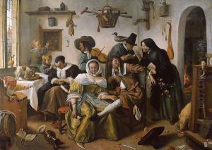 Bring the timeless beauty of Jan Steen's Peasants Merrymaking In An Interior into your home with a handmade oil painting reproduction. Carefully recreated on canvas by skilled artists using traditional techniques, this piece captures the delicate brushwork, subtle light, and vibrant color of the original masterpiece. With museum-level quality and rich texture, it brings elegance and artistic depth to any space. Enjoy free shipping and make this masterpiece a part of your personal collection.