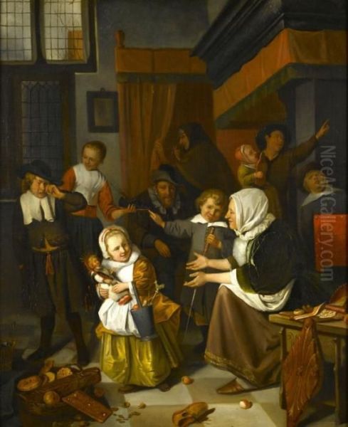 Bring the timeless beauty of Jan Steen's The Feast Of St Nicholas into your home with a handmade oil painting reproduction. Carefully recreated on canvas by skilled artists using traditional techniques, this piece captures the delicate brushwork, subtle light, and vibrant color of the original masterpiece. With museum-level quality and rich texture, it brings elegance and artistic depth to any space. Enjoy free shipping and make this masterpiece a part of your personal collection.
