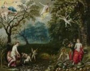 Paradise Landscape With Eve Tempting Adam Eve