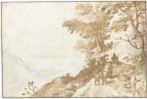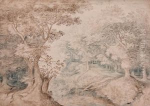 A Wooded Landscape With Travellers On A Path