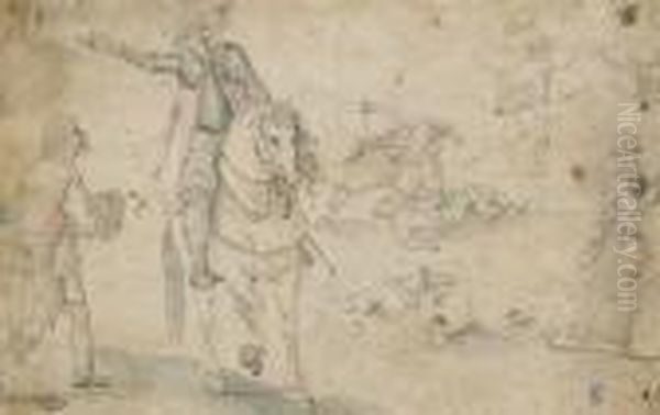 Un Cavalier A Cheval Entoure De Paysans Et Paysannes Fuyant