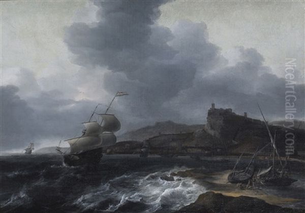 A Dutch Ship Leaving A Mediterrenean Harbour