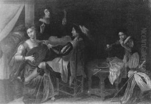 A Concert: A Young Woman Playing A Lute And Singing With Two Companions