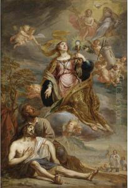 St. Barbara Comforting A Dying Man With The Last Sacrament
