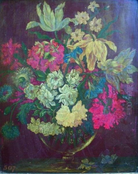 A Glass Bowl Of Mixed Flowers