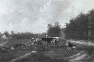 Throughout his career, van Ravenswaay focused on painting landscapes, farm scenes, and animals, particularly sheep. His landscapes often included elements such as water, trees, and rural structures, which he rendered with a naturalistic touch. He was adept at capturing the changing effects of light and atmosphere in his scenes, which added a sense of realism and mood to his work.
