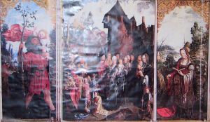 Triptych with The Entry of Christ into Jerusalem, saints and on the outside of the wings, patrons of the Van Lokhorst family