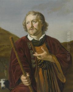 Portrait Of A Young Lady As Diana, Standing Half-length, Wearing Ared And White Dress And Pearl Jewellery, Holding A Bow Andquiver