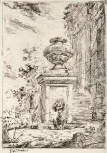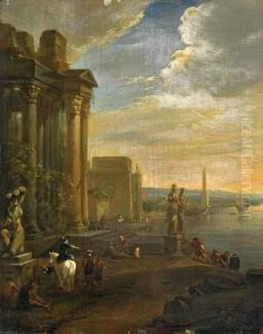 An Architectural Capriccio With A Young Lady Asleep Beside A Basket Of Fruit