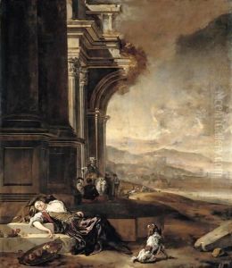 Bring the timeless beauty of Jan Weenix's An Architectural Capriccio With A Young Lady Asleep Beside A Basket Of Fruit into your home with a handmade oil painting reproduction. Carefully recreated on canvas by skilled artists using traditional techniques, this piece captures the delicate brushwork, subtle light, and vibrant color of the original masterpiece. With museum-level quality and rich texture, it brings elegance and artistic depth to any space. Enjoy free shipping and make this masterpiece a part of your personal collection.