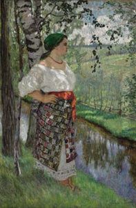 A Stream With A Peasant Woman Crossing A Footbridge