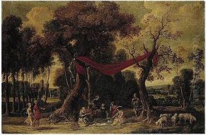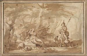 Paesaggio Boschivo Con Una Coppia Di Pastori