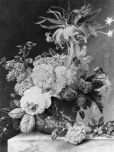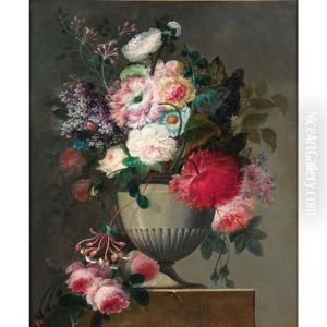 Nature Morte Au Vase De Fleurs Sur Un Entablement De Marbre