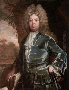 Portrait Of A Gentleman Wearing Brown And Holding A Musket With His Hound Beside Him (+ Portrait Of His Wife Wearing A Gold Dress; Pair)