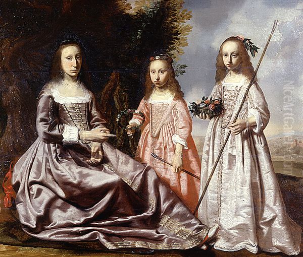 Family portrait of Bouwina Coenders van Helpen (..-1667) and her daughters Gratia Susanna Clant (1630-1690) and Amelia Clant (1633-1695)