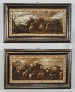 A Cavalry Battle With A Trumpeter On A Bank In The Foreground