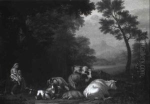 A Landscape With A Shepherd And Shepherdess Resting Beneath A Tree With Cattle Nearby