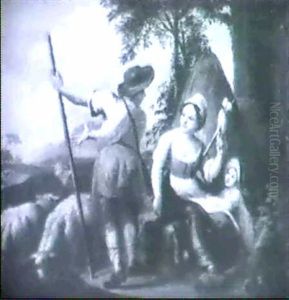 Rustic Courtship; A Shepherdess And Shepherd Resting In A Landscape