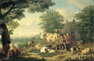 Drovers With A Milkmaid And Cattle Before A Farm In A Landscape
