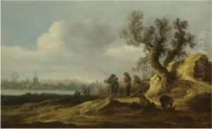 A Wooded Dune Landscape With Two Travellers Resting Under A Treenear A Small Village