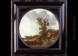 A River Landscape With A Ferry Crossing And Peasants By A Cannon