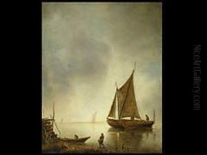 A Farmstead On The Shore With A Jetty, Men In Rowing Boats In The Foreground