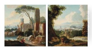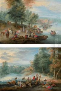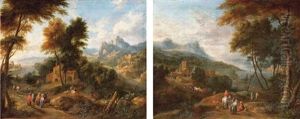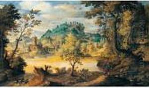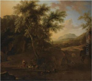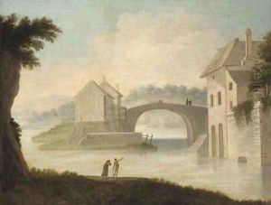 A River Landscape With Travellers Near A Bridge
