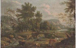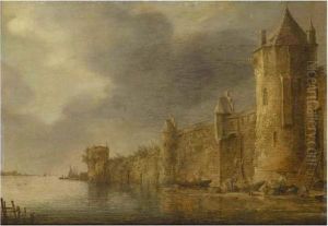 River Landscape With Figures On The Shore Beneath A Fortified Town