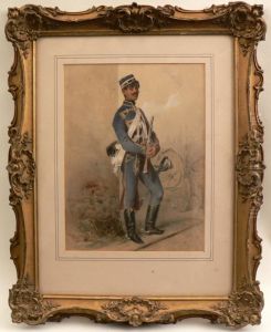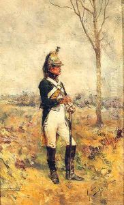 A Cavalry Officer Conversing With A Peasant Girl Outside A Tent