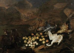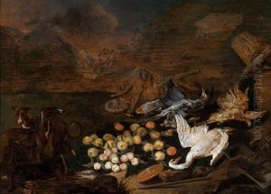 An Allegory Of The Order Of The Knights Of Malta With An Eagle, Herons, Turkeys, A Cockatoo, A Spoonbill, A Jay, Pheasants, Hoopoes, Pigeons, Ducks, A Lapwing, Owls, And Other Birds All In A Landscape