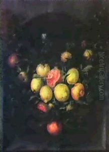 Swags Of Flowers Surrounding An Ornately Covered Stone Cartouche With The Christ Child As Salvator Mundi