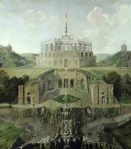 View from the Riesenkopf Waterfalls over the Distorted Water-grotto to the Octagon after 1716