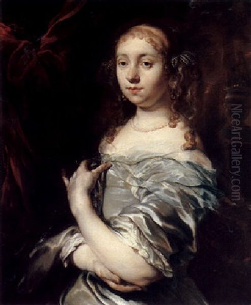 Bring the timeless beauty of Jan van Noordt's Portrait Of A Lady, Half Length, Wearing Pearls And A Grey Satin Gown With A Blue Shawl, And Ornamental Garden Beyond into your home with a handmade oil painting reproduction. Carefully recreated on canvas by skilled artists using traditional techniques, this piece captures the delicate brushwork, subtle light, and vibrant color of the original masterpiece. With museum-level quality and rich texture, it brings elegance and artistic depth to any space. Enjoy free shipping and make this masterpiece a part of your personal collection.