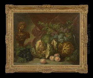 Still Life Of Grapes, Quince, Fig, Melon, Medlar, Pineapple, Peaches, Plums, Raspberries, Sweetcorn, Poppies, Roses, Hollyhocks, Morning Glory, Eryngium...