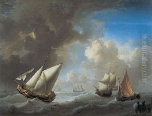 Fregatte Mit Hollandischer Nationalflagge Und Weitere Schiffe Auf Bewegter See