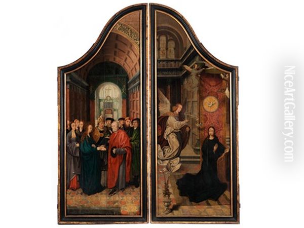 Altartafeln Mit Den Darstellungen Vermahlung Mariens Mit Dem Heiligen Josef Sowie Die Verkundigung (pair) (collab. W/jacob Cornelisz Van Oostsanen)