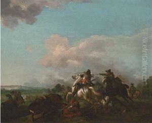 A Cavalry Skirmish In An Extensive Landscape