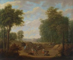 A Landscape With A Hunting Party In The Foreground