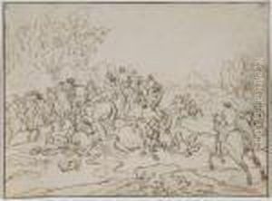 A Cavalry Engagment In A Landscape
