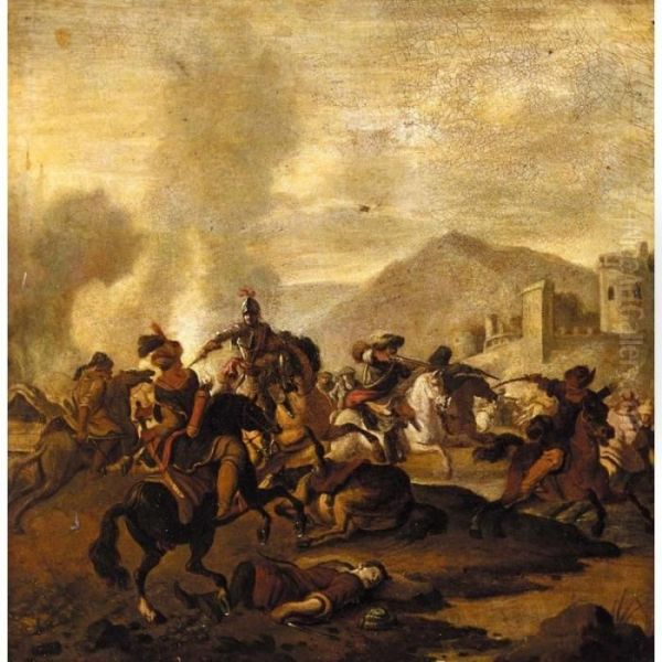 A Cavalry Engagement, Between Turks And Christians, Before A Fortified Town
