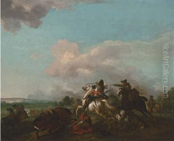 A Cavalry Skirmish Oil Painting by Jan von Huchtenburgh