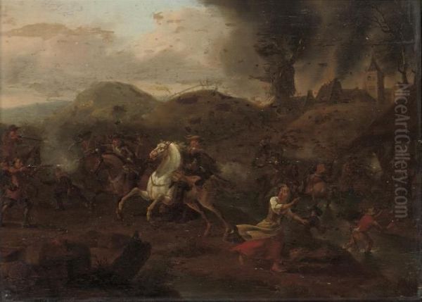 A Skirmish Between Cavalry And Infantry