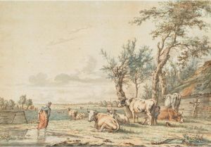 Kobell's artistic career was relatively short, as he died at the young age of 36 on January 1, 1814, in The Hague. Despite his early death, Kobell left behind a substantial body of work that continues to be appreciated for its contribution to Dutch landscape and animal painting. His works can be found in various collections and museums, offering insight into the Dutch pastoral genre of the late 18th and early 19th centuries.