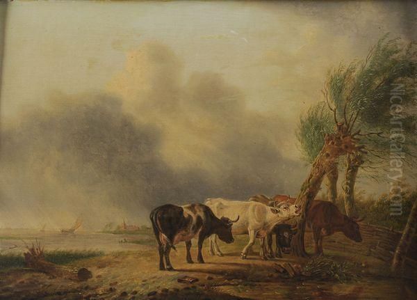 Vaches Au Bord D'un Etang